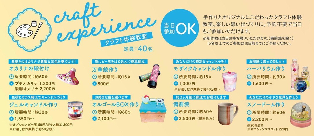 楽しい思い出づくりに。予約不要で、当日もご参加いただけます。